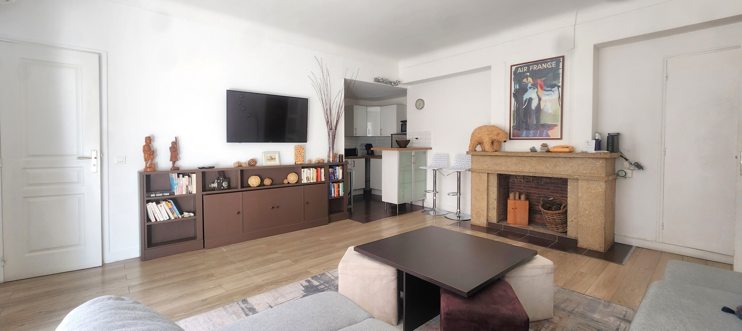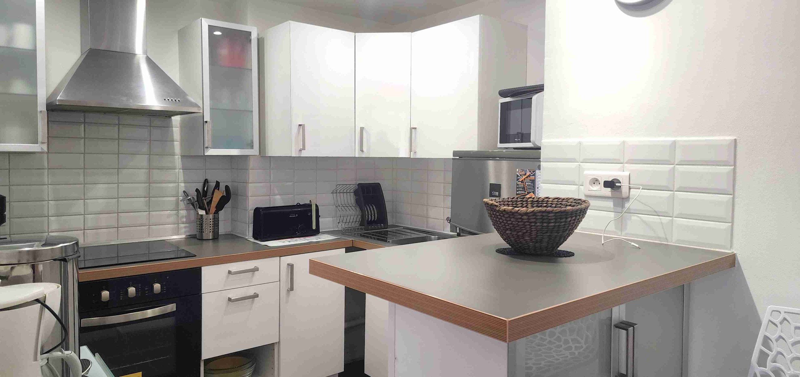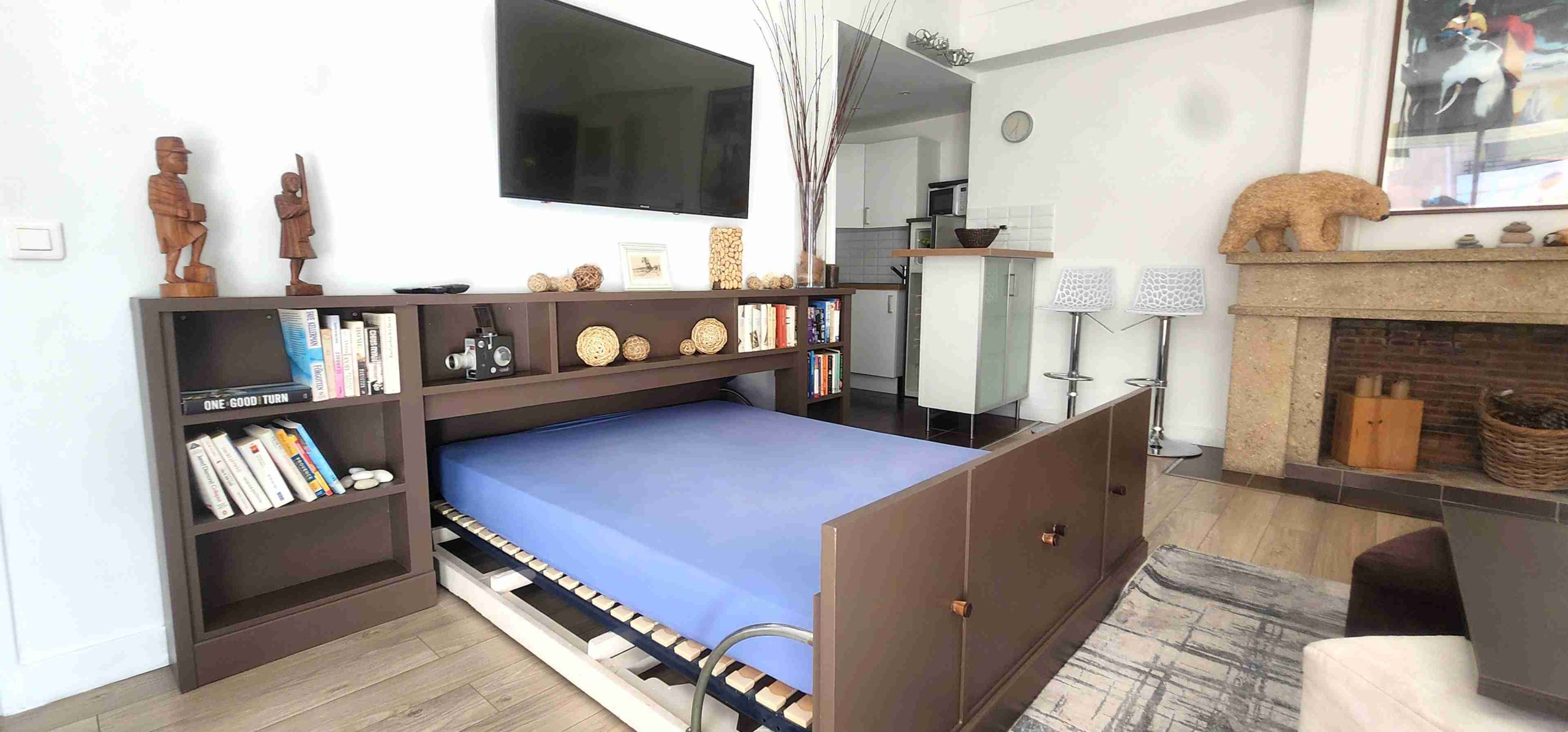 The 50m² apartment is fully equipped with a large living room with modern kitchen and sofa bed.