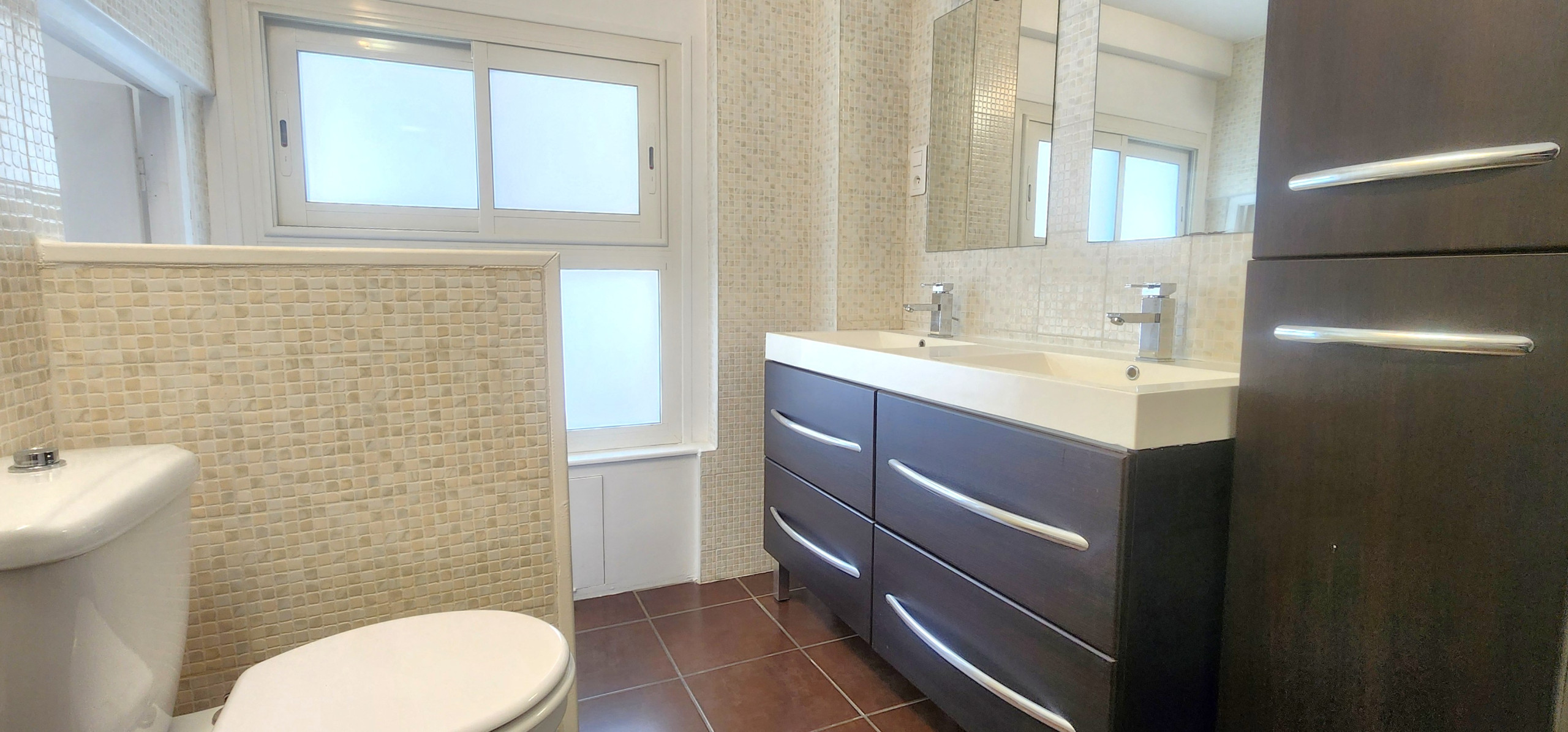 It has a large terrace and air conditioning.