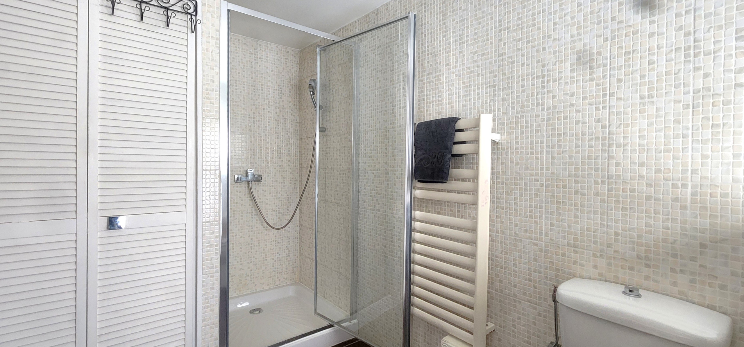 Bathroom with shower and washing machine. Separate WC.