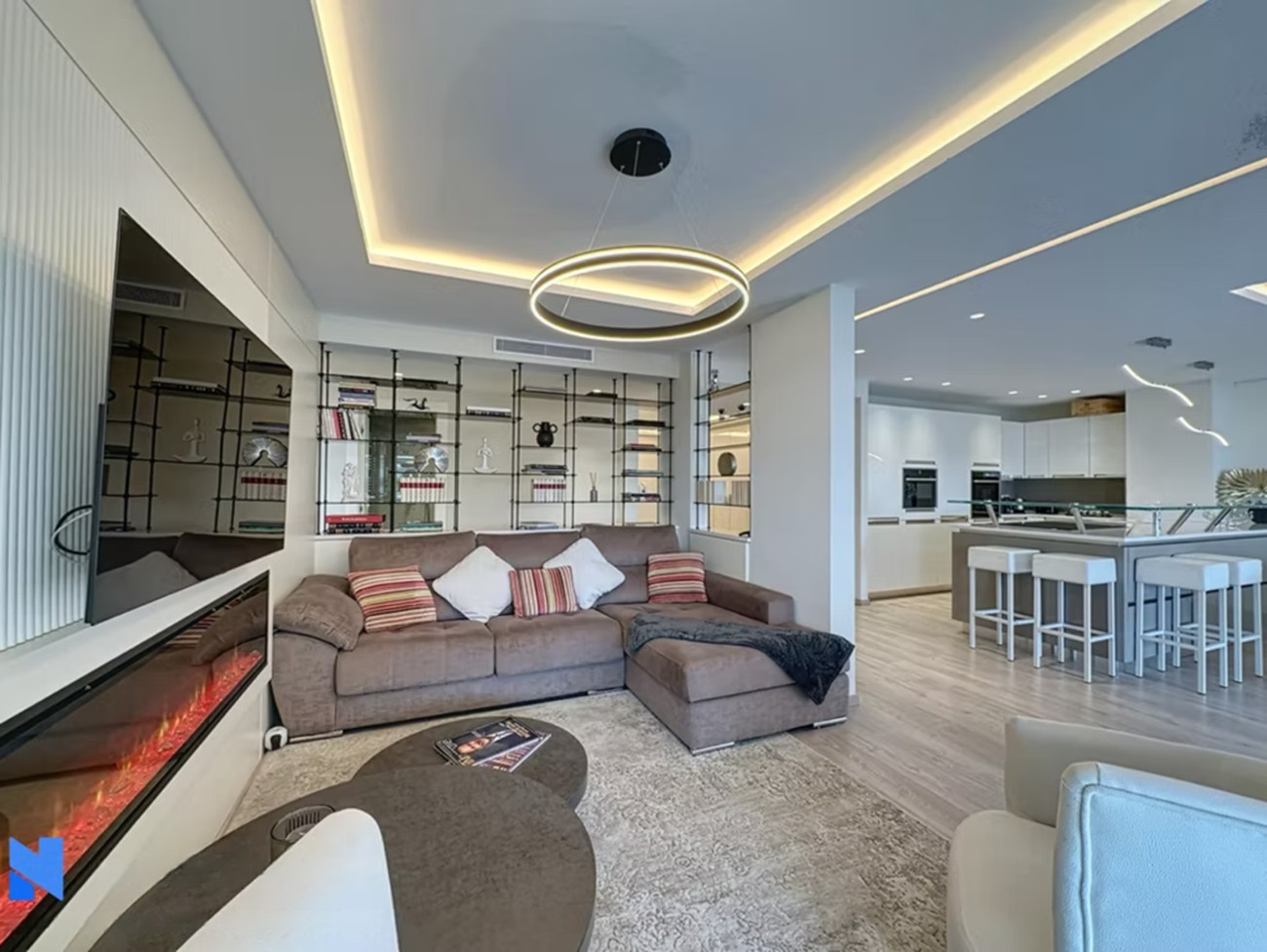 The 50m² apartment is fully equipped with a large living room with modern kitchen and sofa bed.