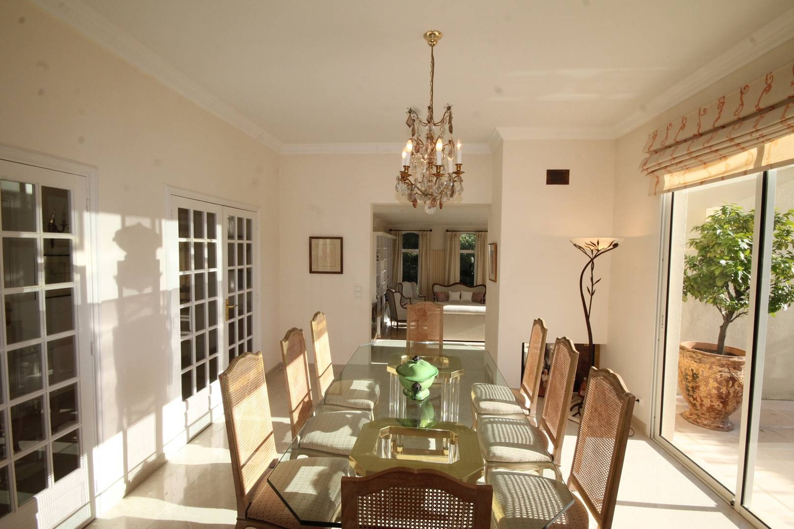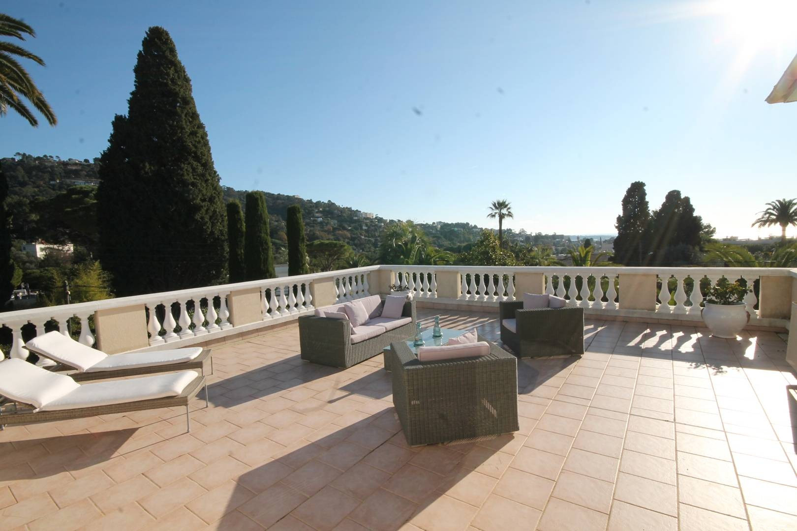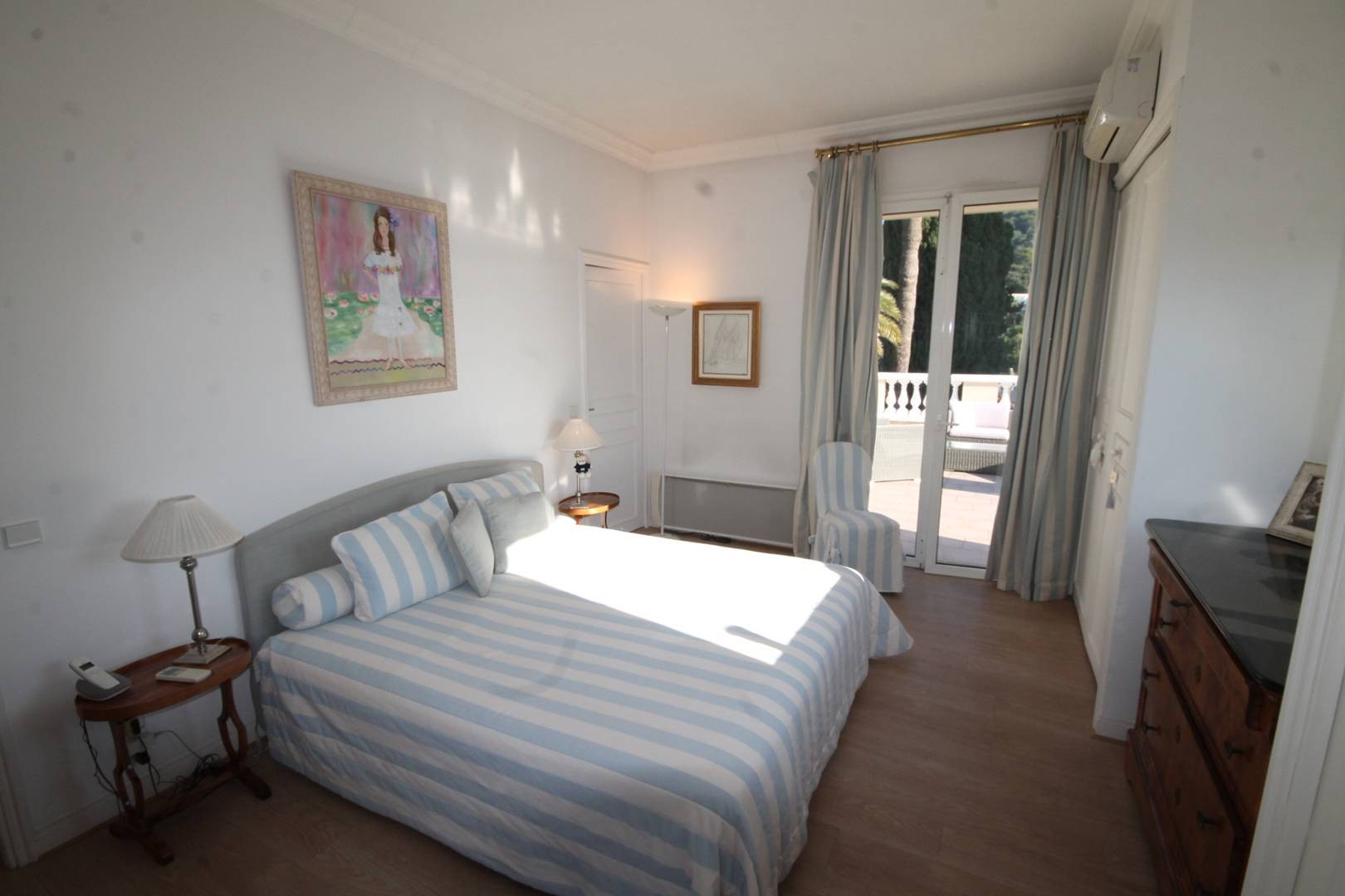 2.3 km from the Palais des Festivals and the Croisette, in Springland Park, is a villa set on 1,500 m² of enclosed grounds with a 12 m x 5 m private swimming pool equipped with an alarm, terraces furnished with garden furniture, deckchairs and sea views, as well as parking for three cars. Shops and restaurants are 1.5 km away and beaches are 2 km away.