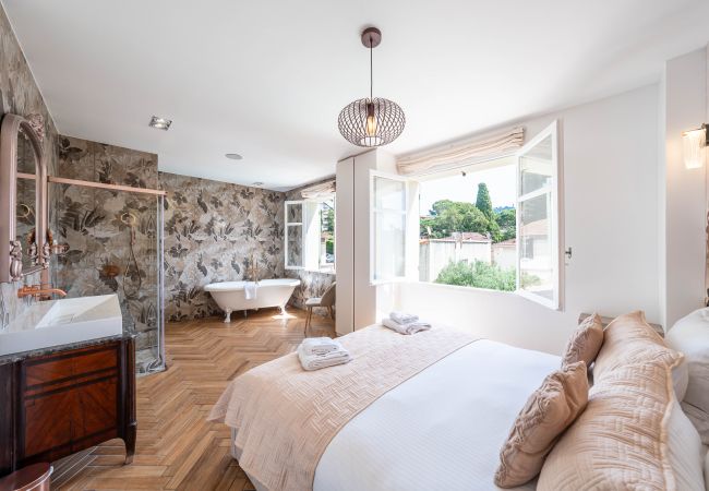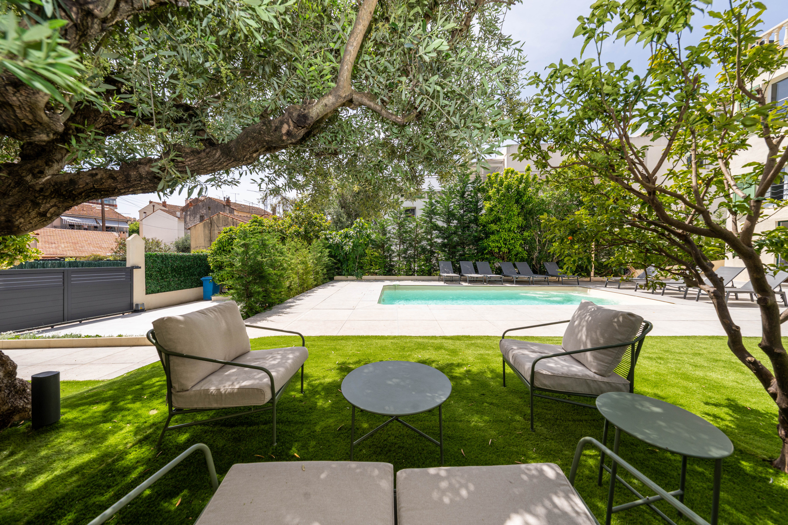Located just 7 minutes from the Croisette, this fully air-conditioned villa is ideal for holidays with family or friends. It can accommodate up to 10 people thanks to its 5 suites with private bathrooms and an independent studio.