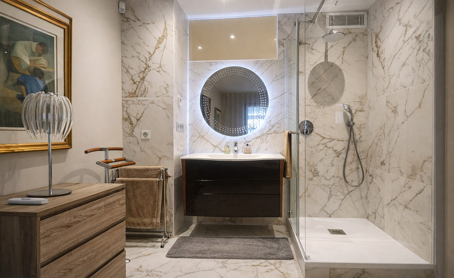 Dans une résidence privée et sécurisée avec son parc arboré, luxueux appartement composé de 2 grandes chambres et 2 salles de bains dont une ensuite avec douche et une indépendante avec baignoire et douche.