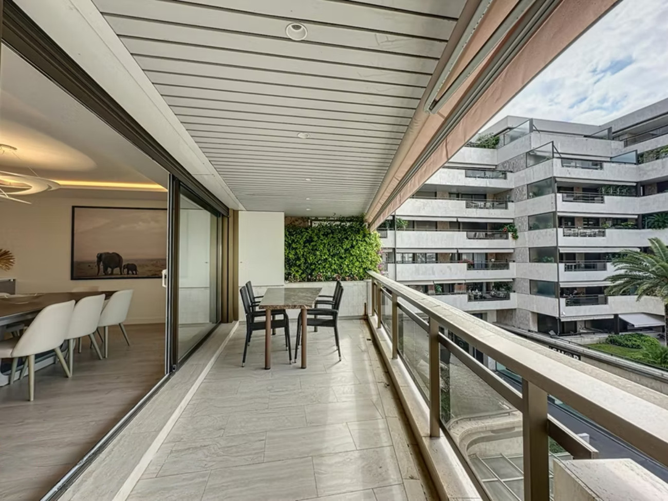Situé dans la prestigieuse résidence sécurisée du Gray d'Albion, à 100m de la croisette et des plages, magnifique 3 pièces de 140m² entièrement climatisés. Grande terrasse de 45m² avec vue mer.